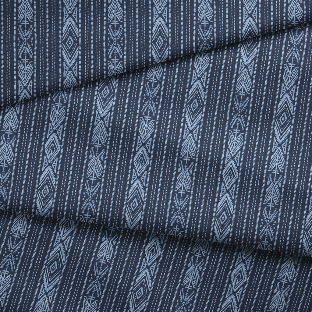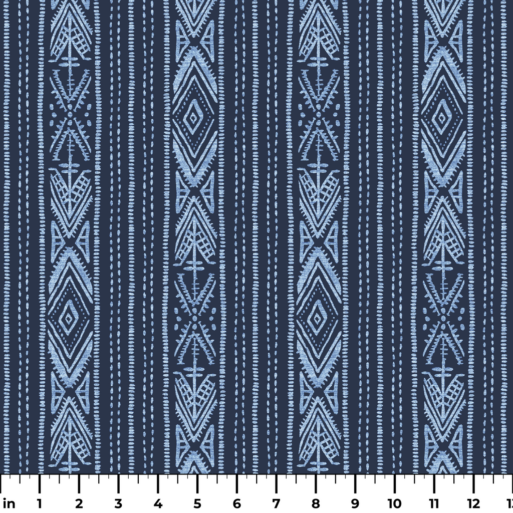 Indigo blue tribal pattern featuring geometric diamond motifs with intricate dotted lines creates a striking ethnic textile design perfect for bohemian home decor.