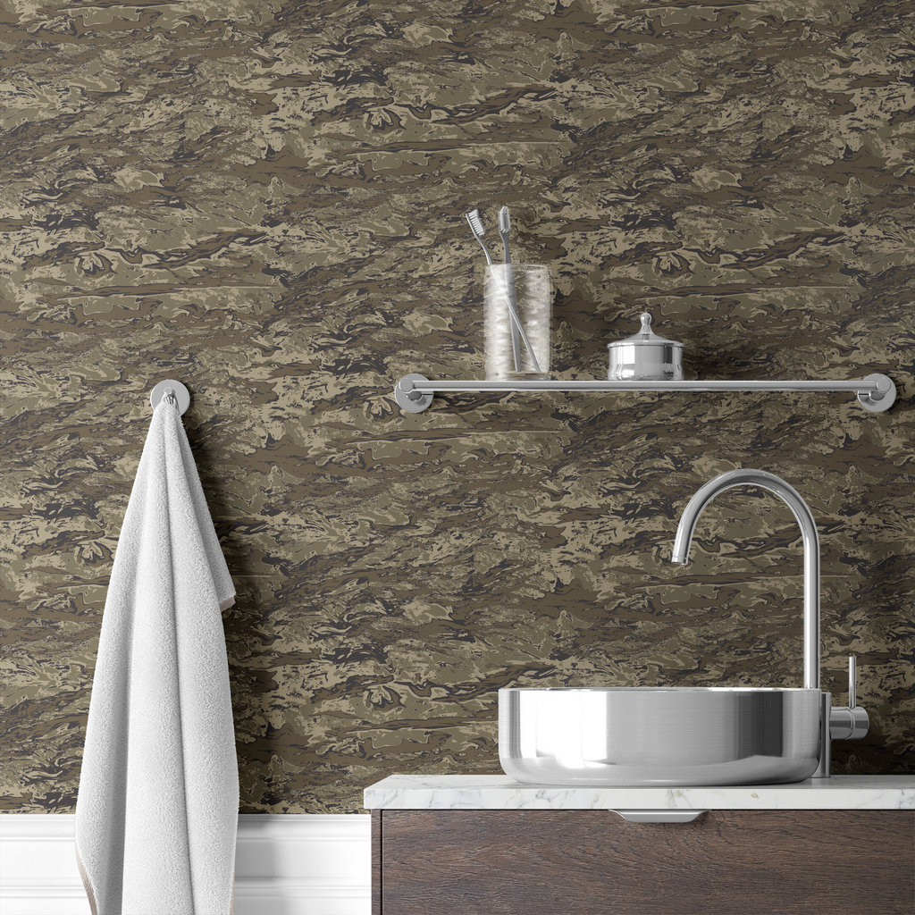 Realistic brown camo True Timber pattern featuring textured earth tones and organic shapes. Perfect for hunting-themed spaces.