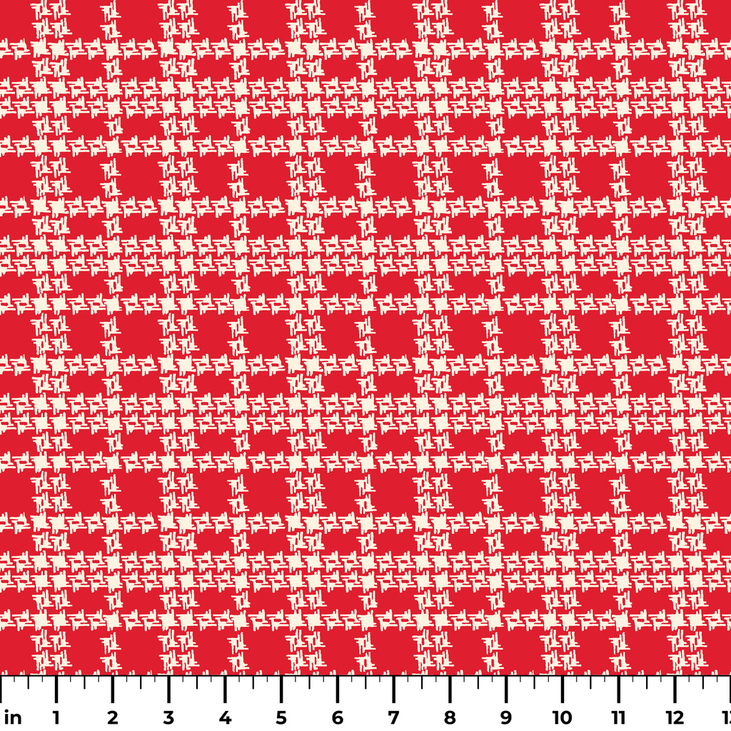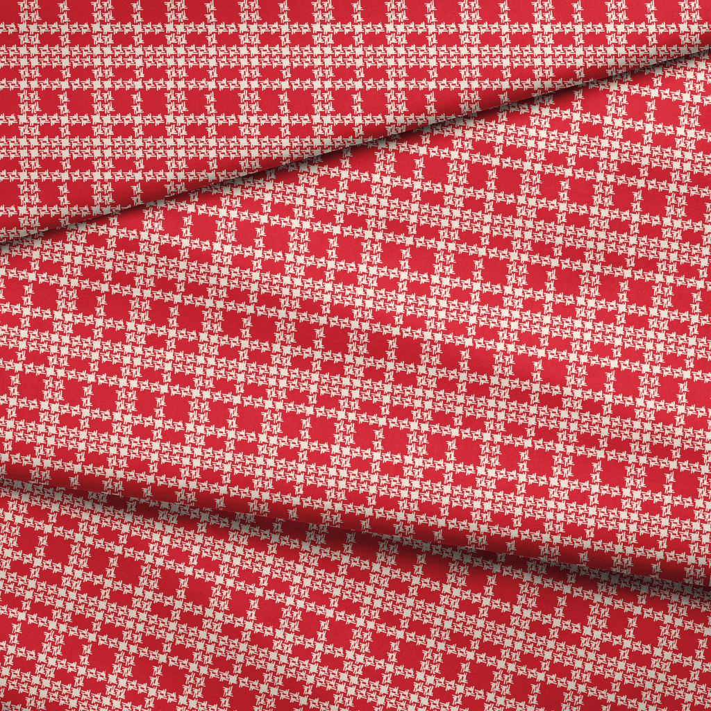 Urban Crosshatch - Red Fill Geometric Fabric