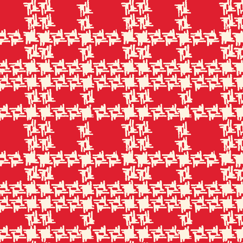 Bold red background with cream-colored brushstroke plaid creates a modern yet rustic take on a classic pattern. The unique, hand-drawn quality of the lines gives this design a distinctly artisanal feel. This design would make a standout holiday table runner or striking accent pillows that bring warmth and graphic interest to any space.