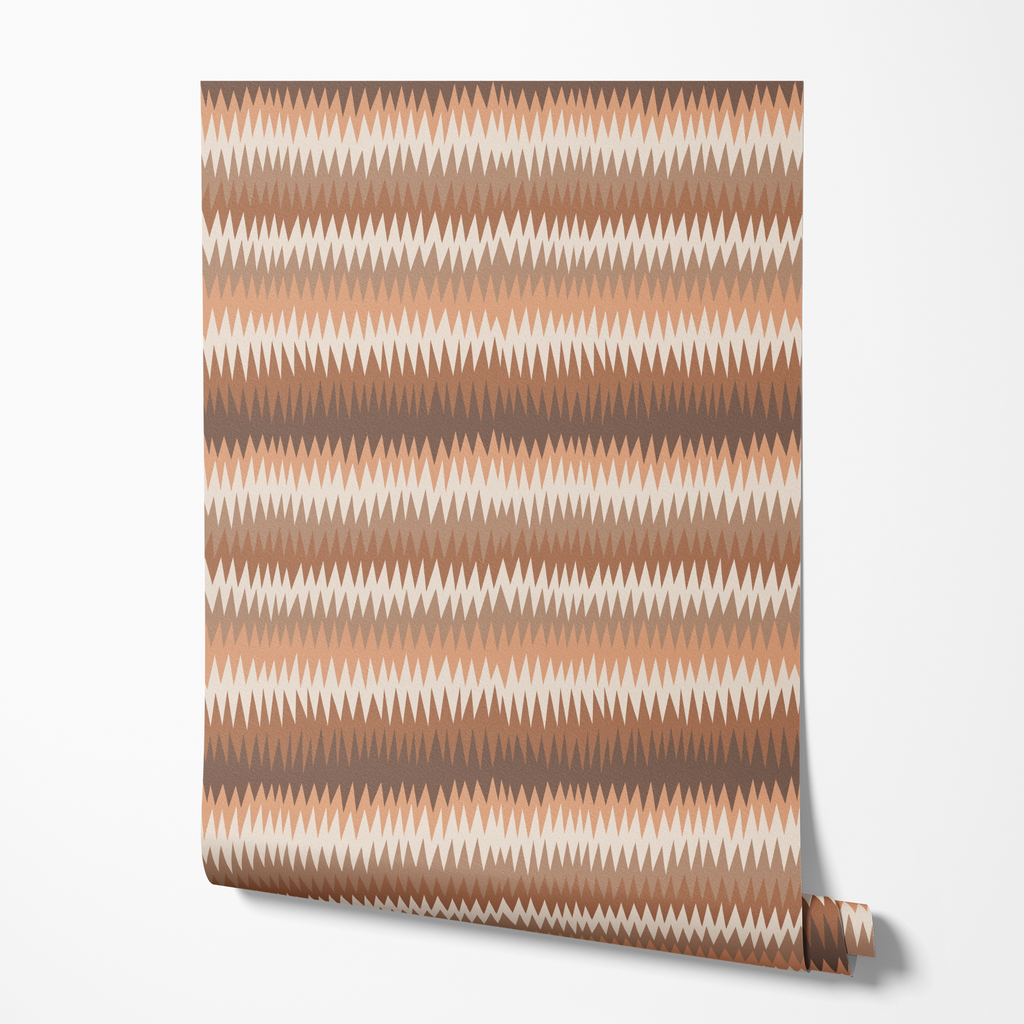 Warm earth tones in a striking geometric zigzag pattern create a sophisticated southwestern-inspired design. Perfect for contemporary home decor that brings a touch of desert elegance to any space.
