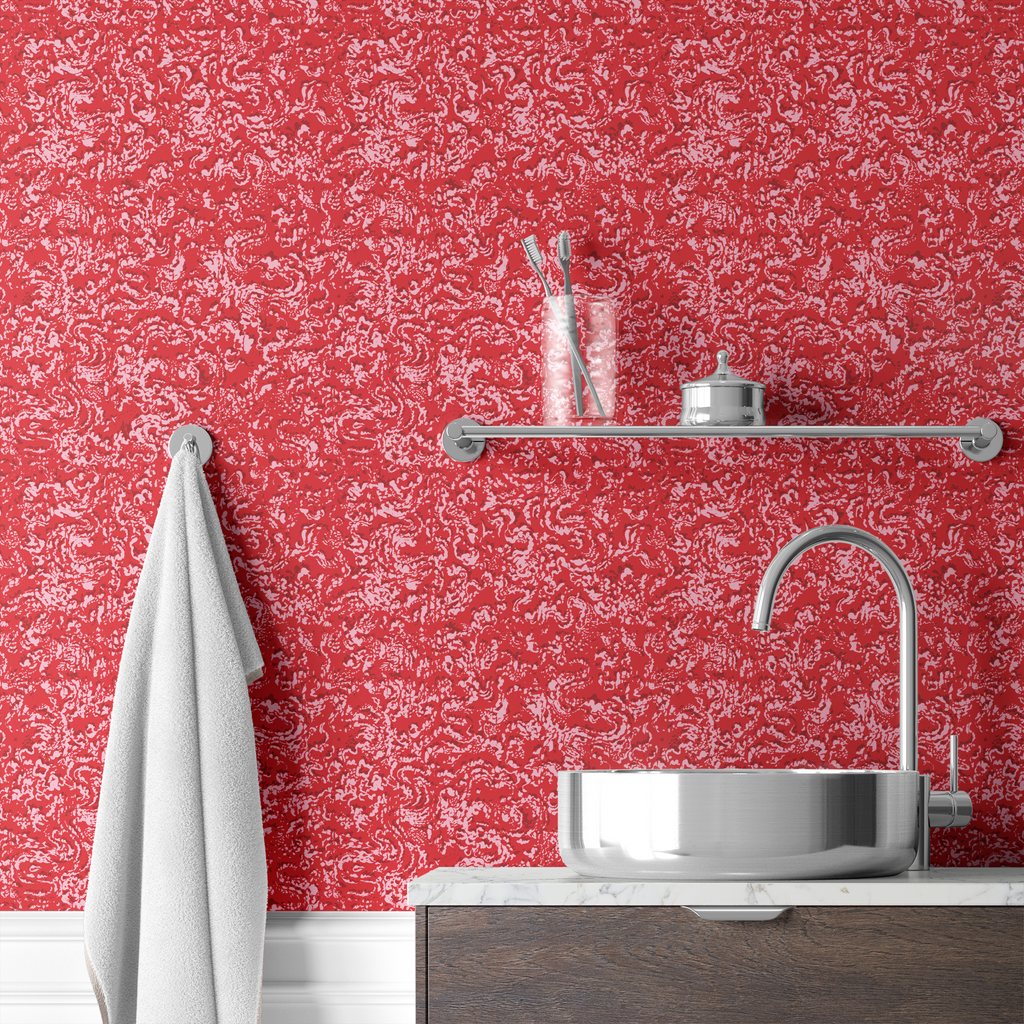 Vibrant red marble textured background with swirling organic patterns creates a bold, contemporary look ideal for modern home decor.