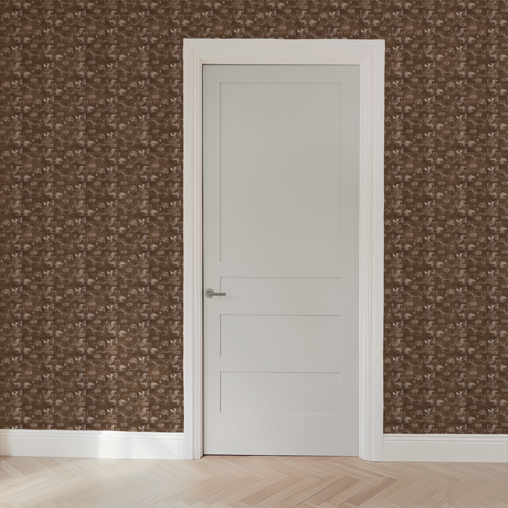 Vintage Farm Chickens on Brown Wallpaper