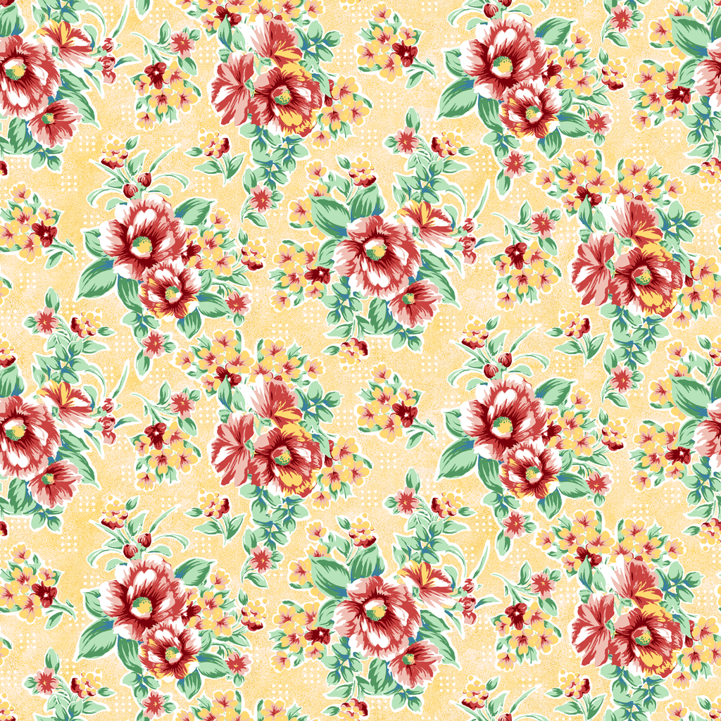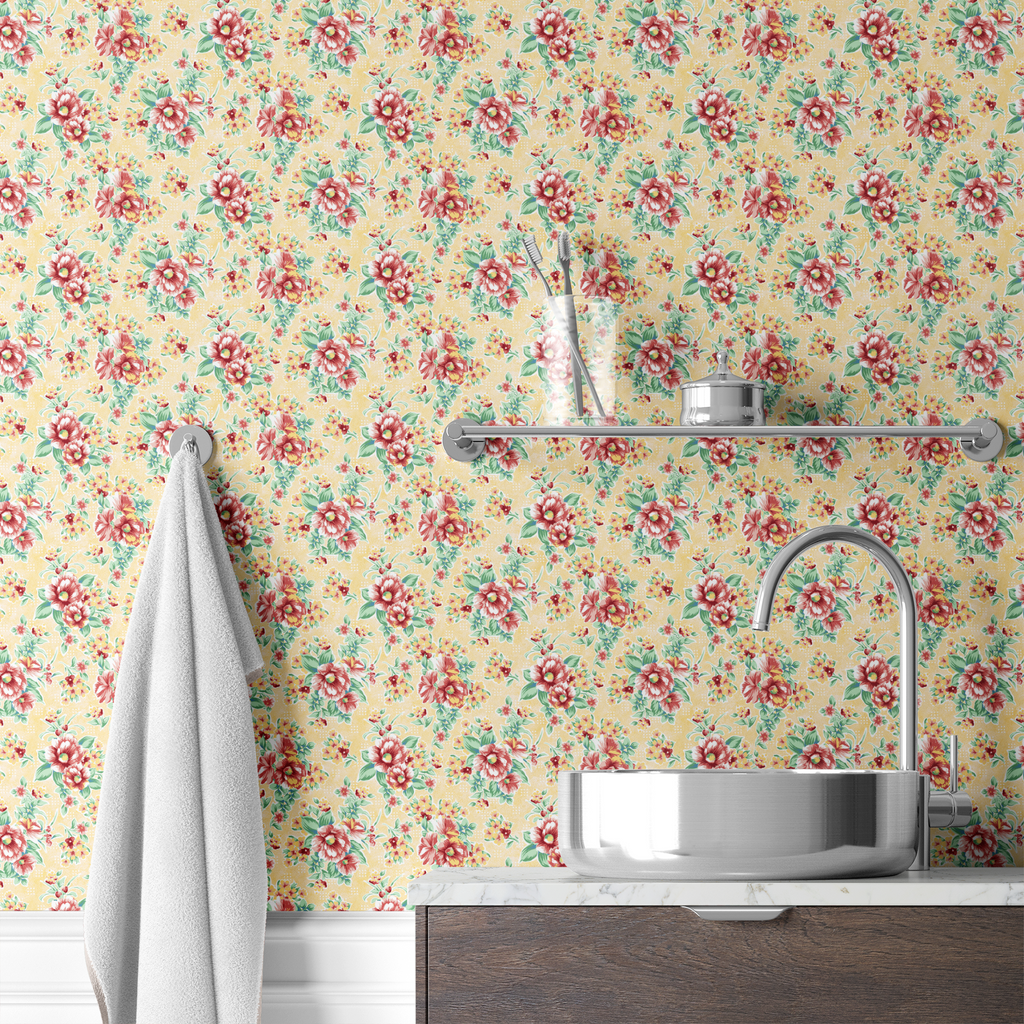 Vintage Florals on Butter Yellow Wallpaper