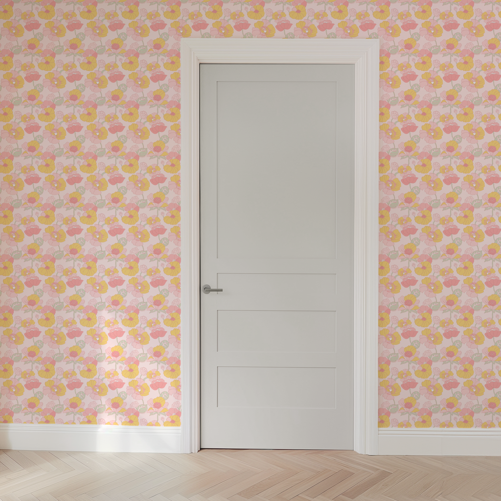 Soft vintage floral pattern featuring delicate pink and yellow blooms with pale green leaves on a light background - perfect for a retro-inspired feminine aesthetic.