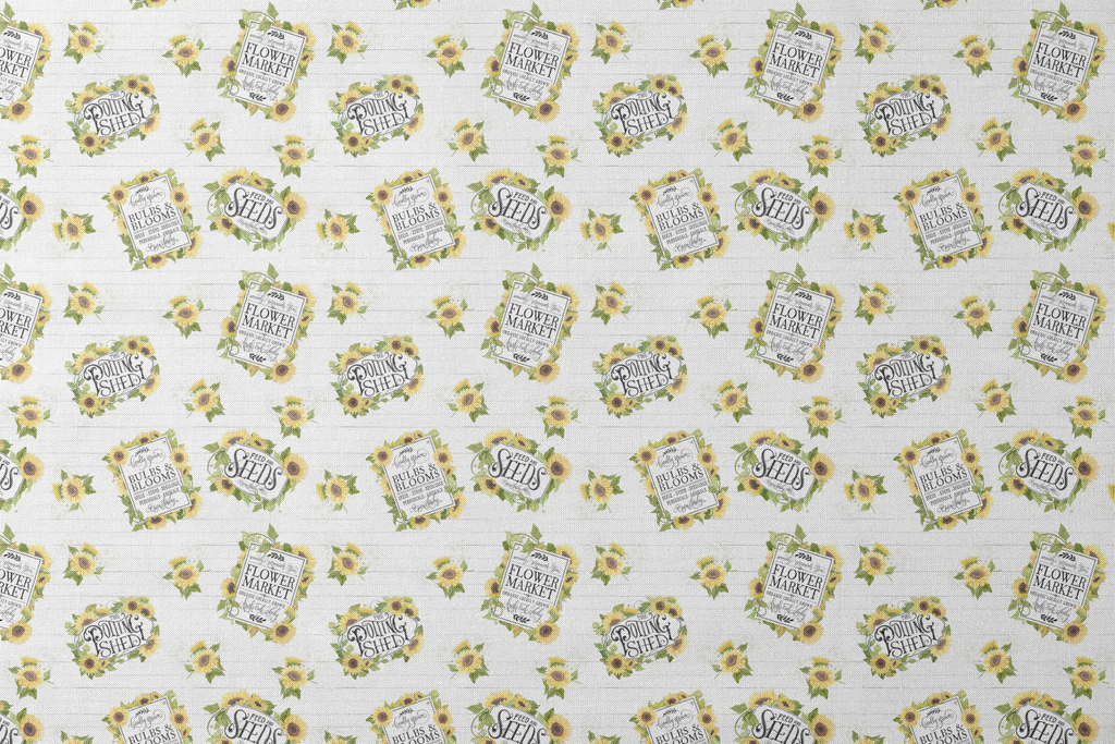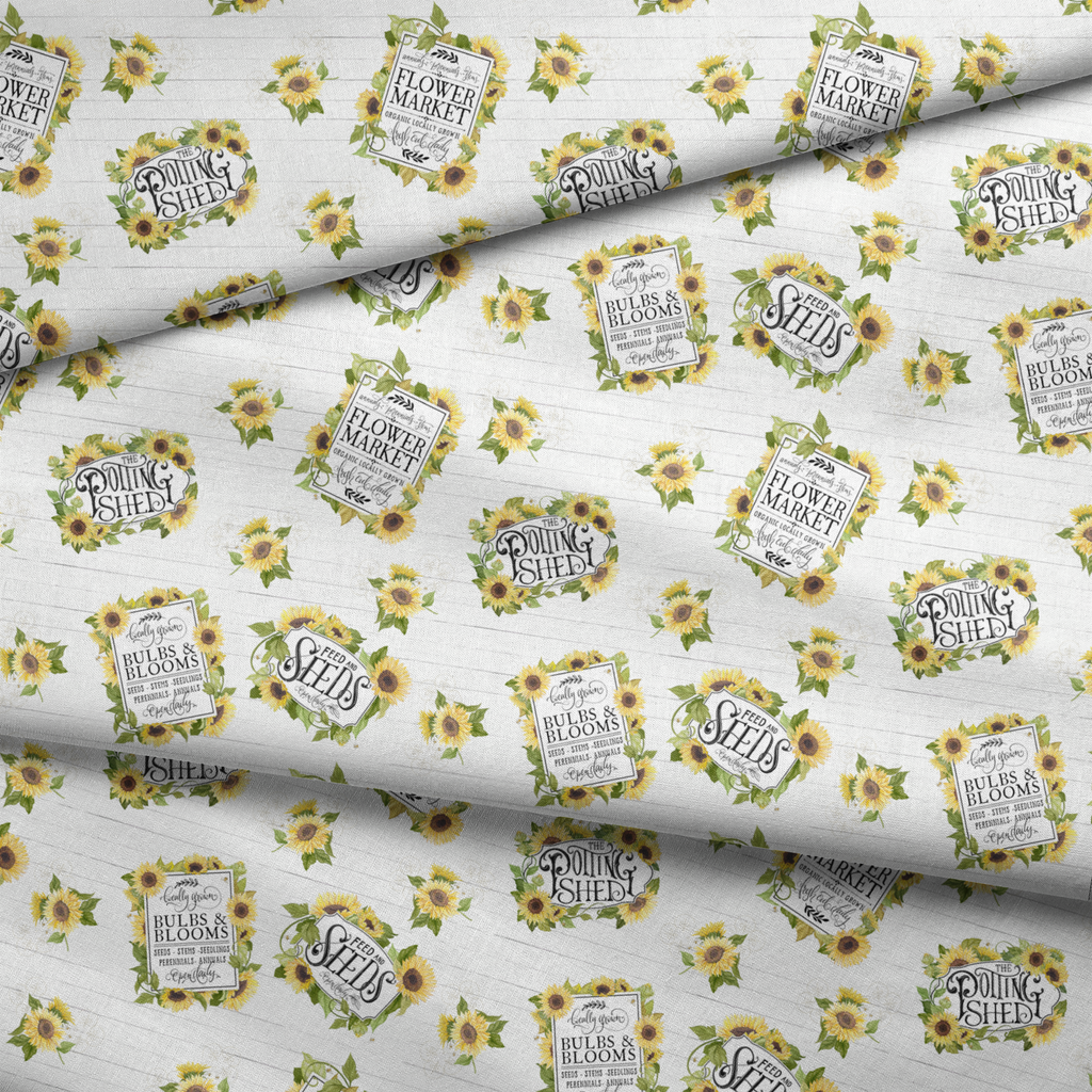 Vintage Sunflower Garden Signs on Shiplap by Nicole Tamarin Fabric