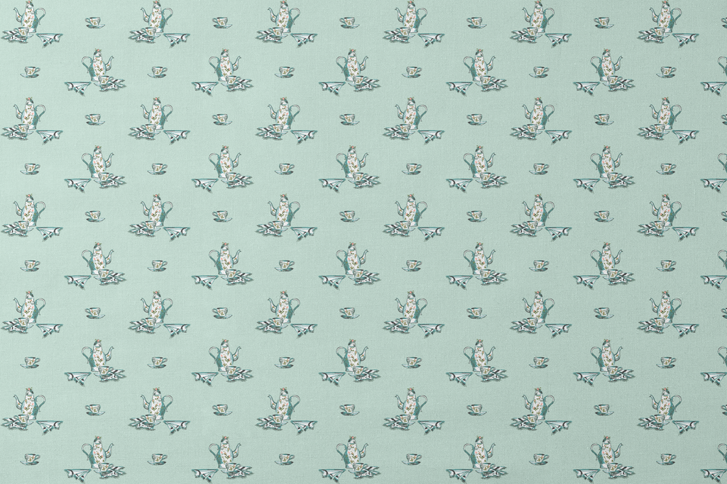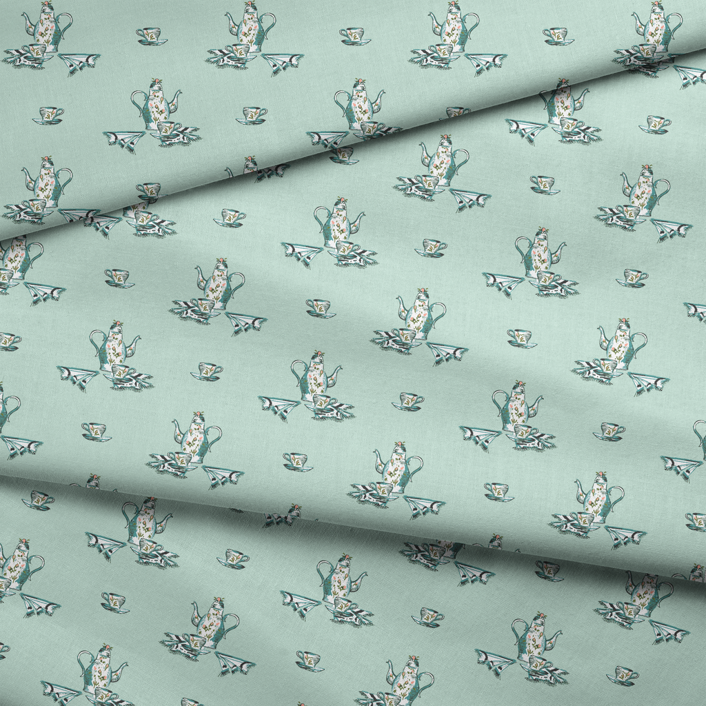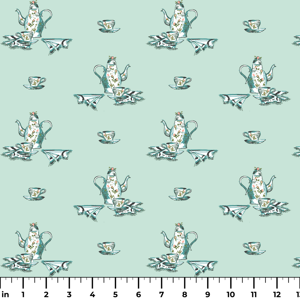 Vintage Teapot on Mint Green Fabric