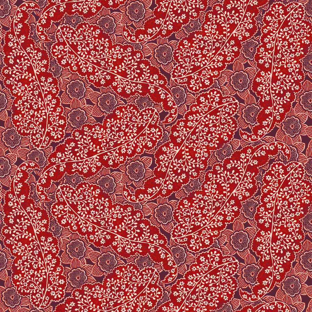 Berry red traditional paisley pattern with intricate bohemian swirls and organic flowing designs perfect for vintage-inspired home decor and crafting.