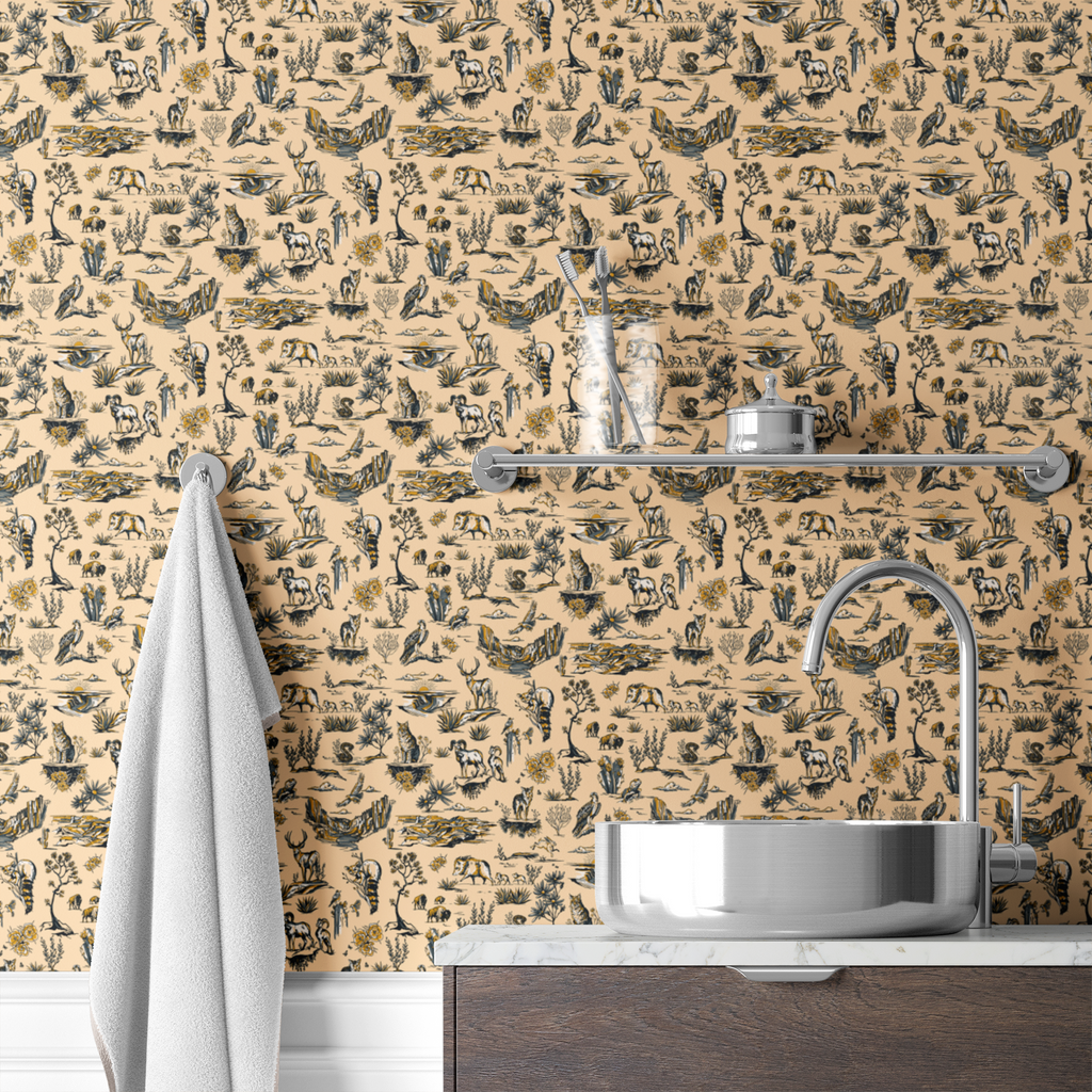 Whiskey Ginger Grand Canyon Toile Beige Wallpaper