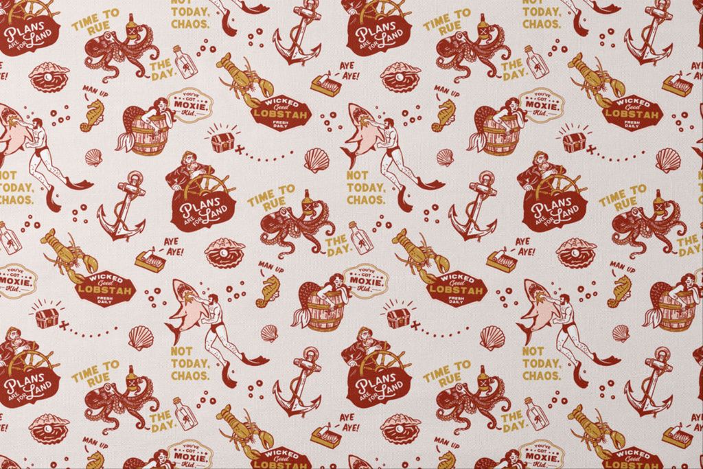Vintage nautical pattern featuring whimsical octopi, anchors, and seashells in warm rust and amber tones - perfect for coastal-inspired home decor.