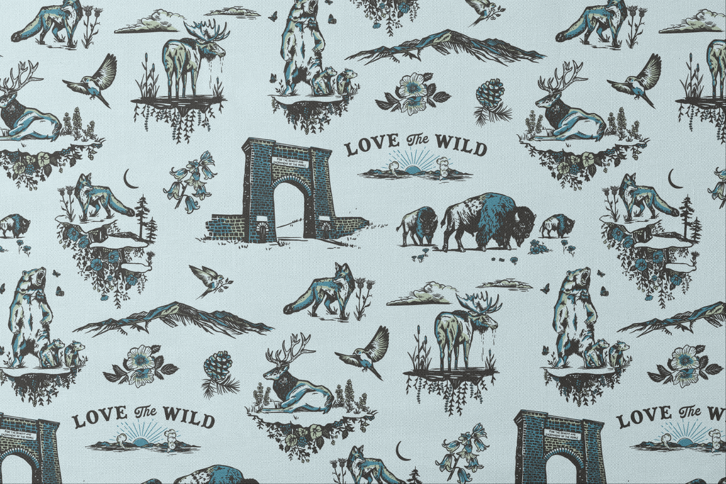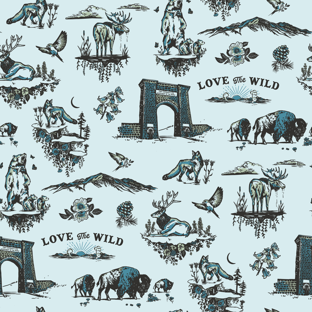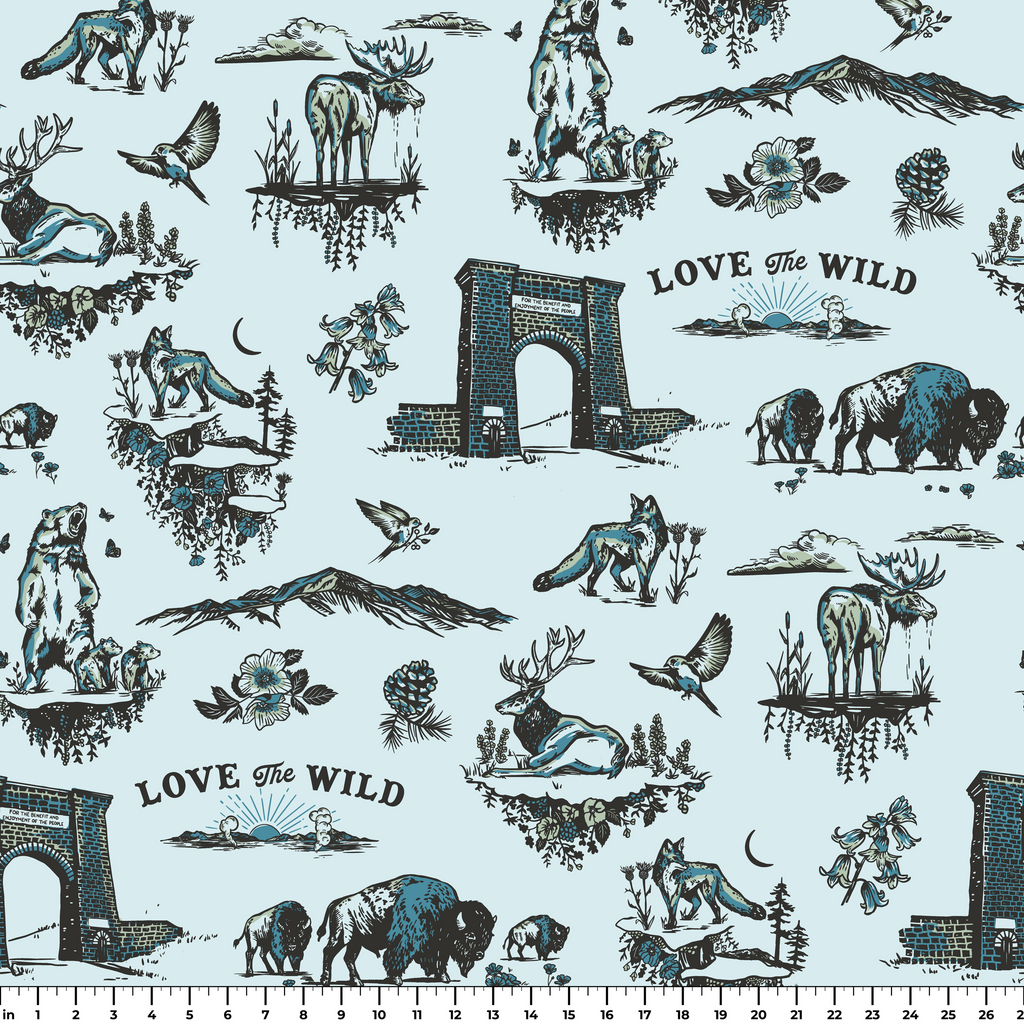 Whiskey Ginger Yellowstone Wildlife Blue Fabric