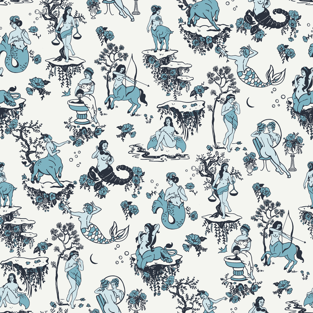 Whiskey Ginger Zodiac Toile Blue Wallpaper