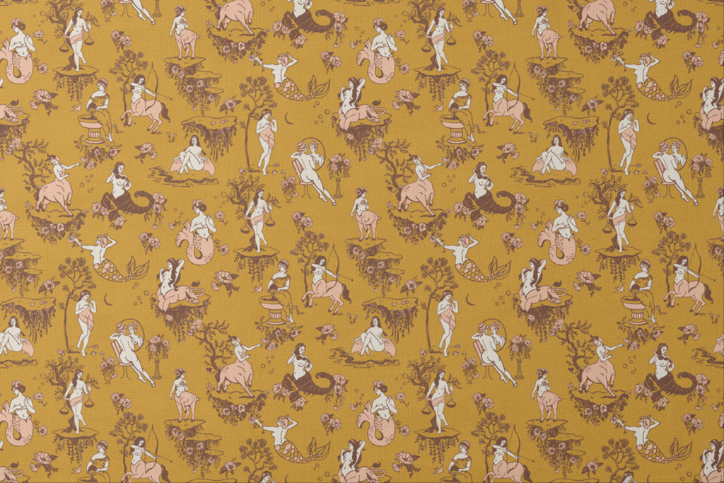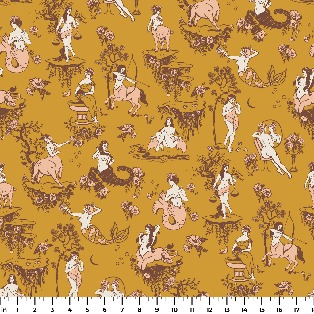 Whiskey Ginger Zodiac Toile Gold Fabric