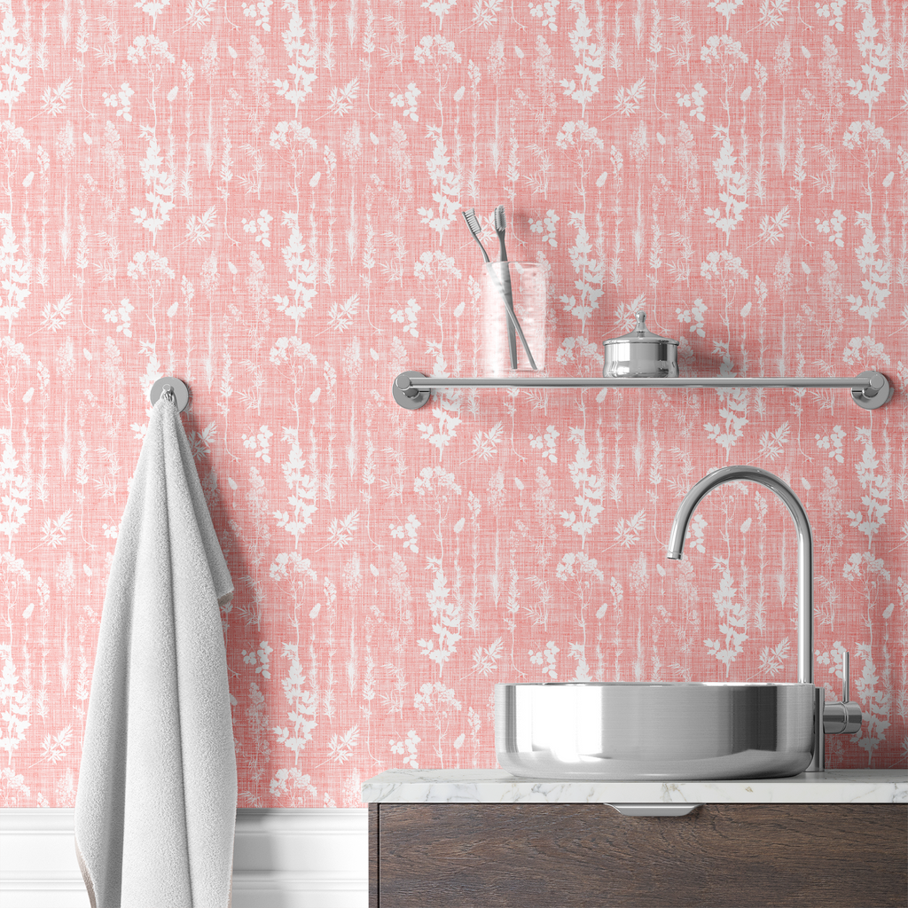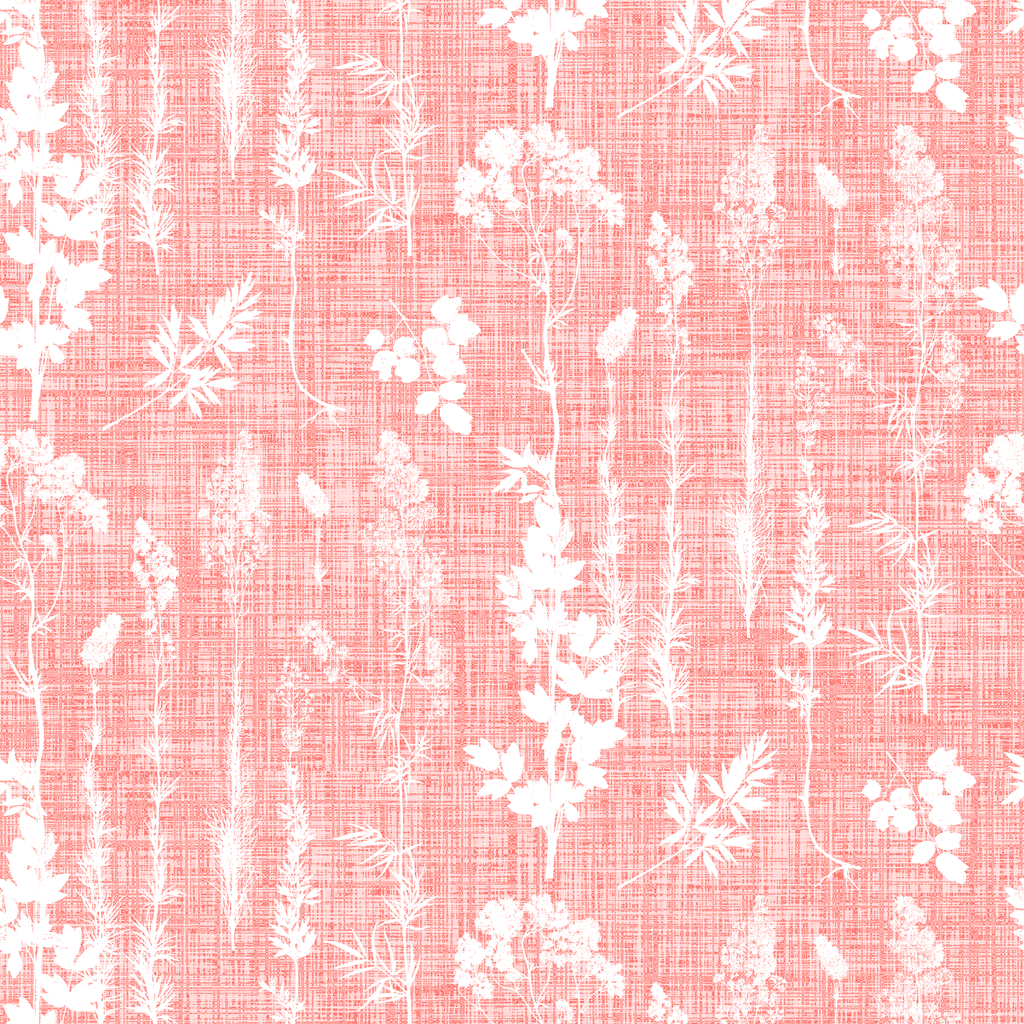 Wildflower Silhouettes on Coral Wallpaper