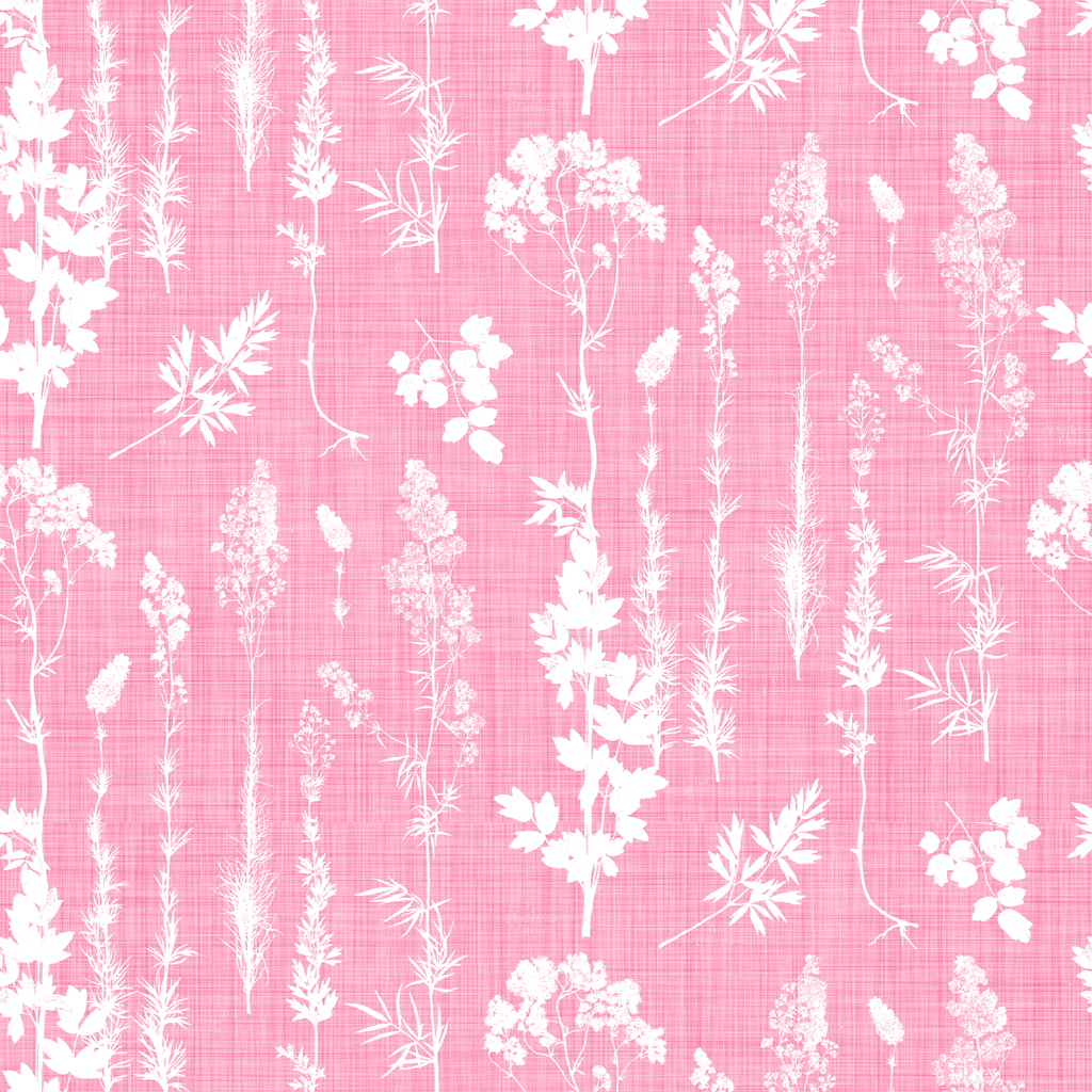 Elegant botanical silhouettes on a pink background create a charming floral pattern perfect for any space.