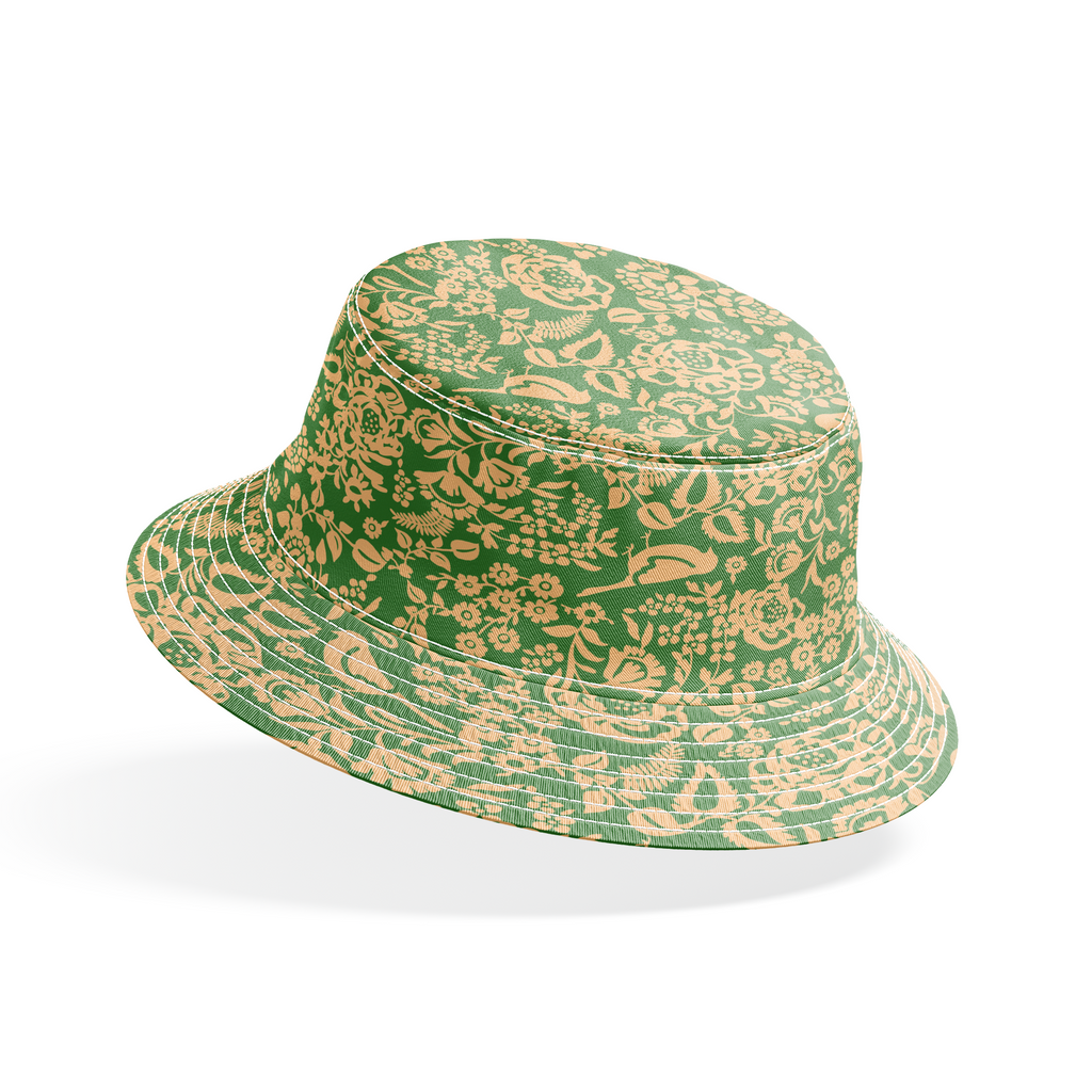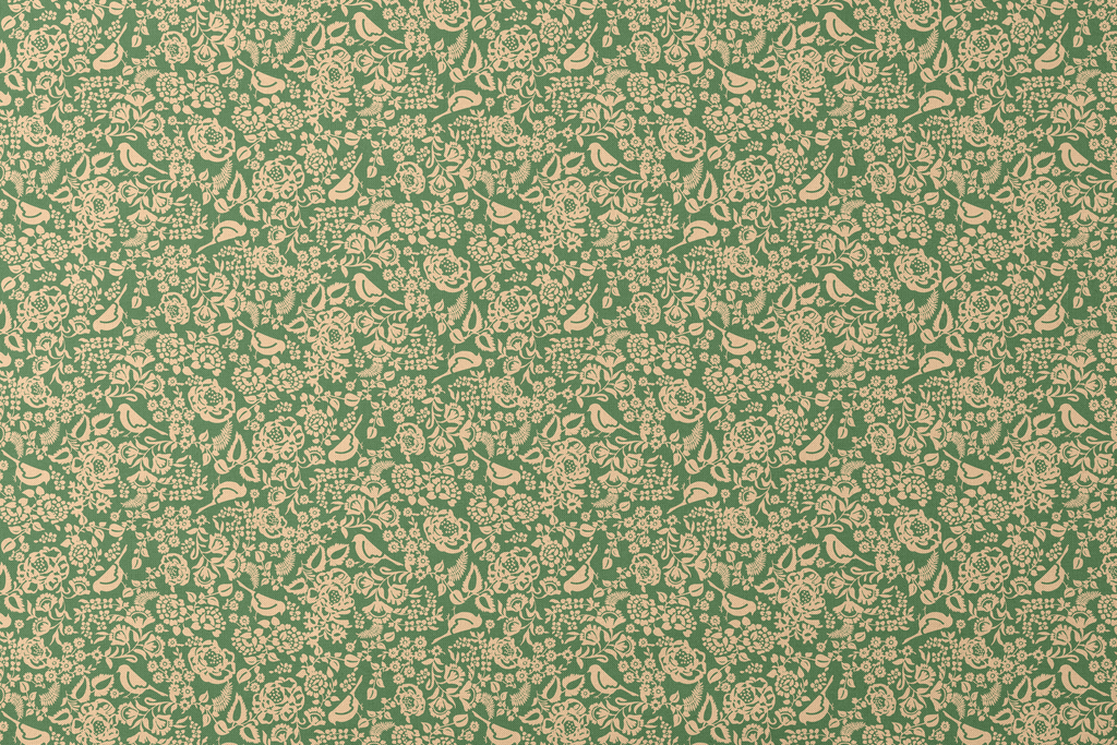 Vintage green and yellow botanical pattern featuring delicate flowers, berries, and flowing vines in an elegant traditional floral design perfect for classic home decor.