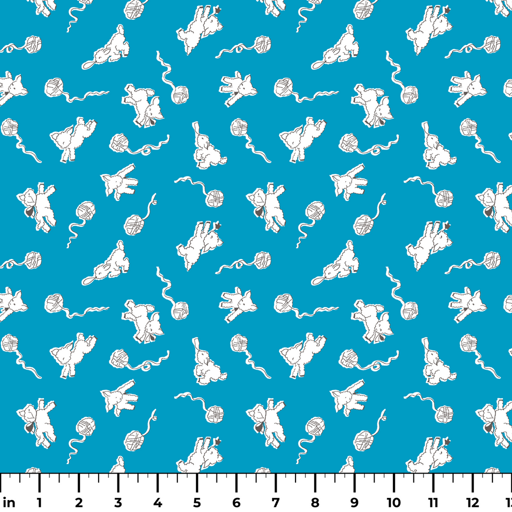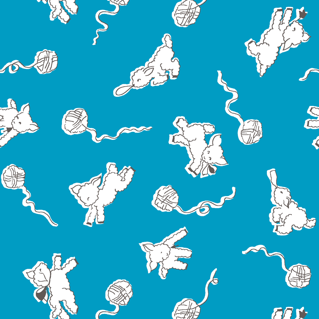 Adorable line-drawn lambs frolic across a vibrant blue background, accompanied by whimsical balls of yarn with trailing strings. The charming illustration features fluffy white sheep in various playful poses, creating a sweet, nursery-inspired design with a hand-sketched quality. Perfect for baby blankets, nursery curtains, or a cozy reading nook pillow that brings a touch of pastoral charm to any little one's space.