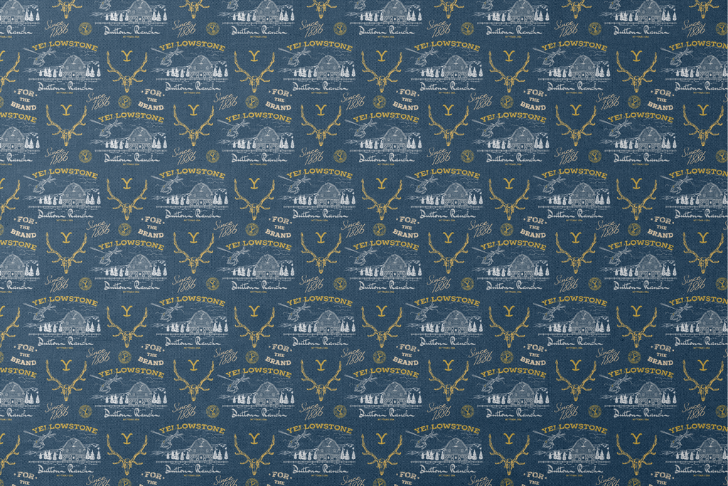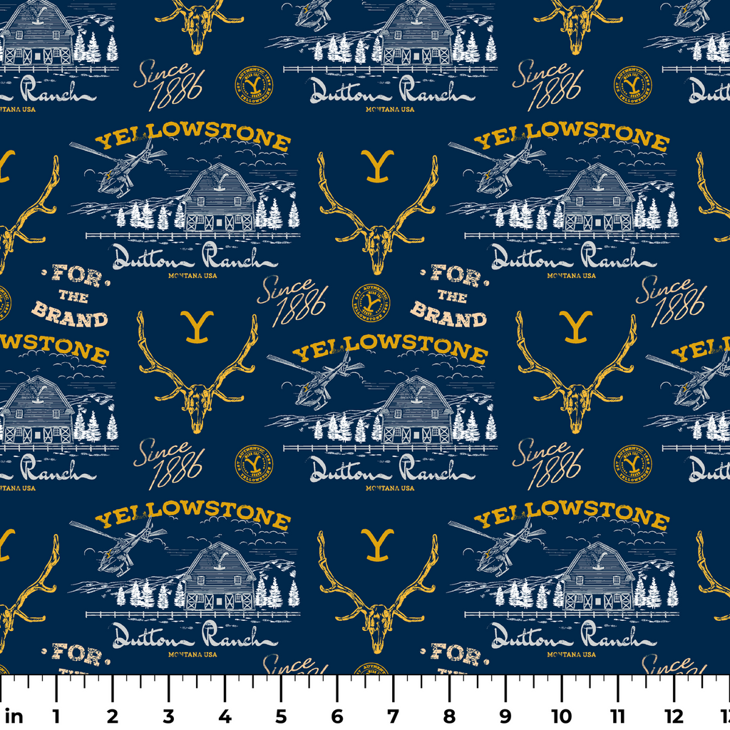 Yellowstone Heritage Dutton Ranch Scenic Print on Navy Fabric