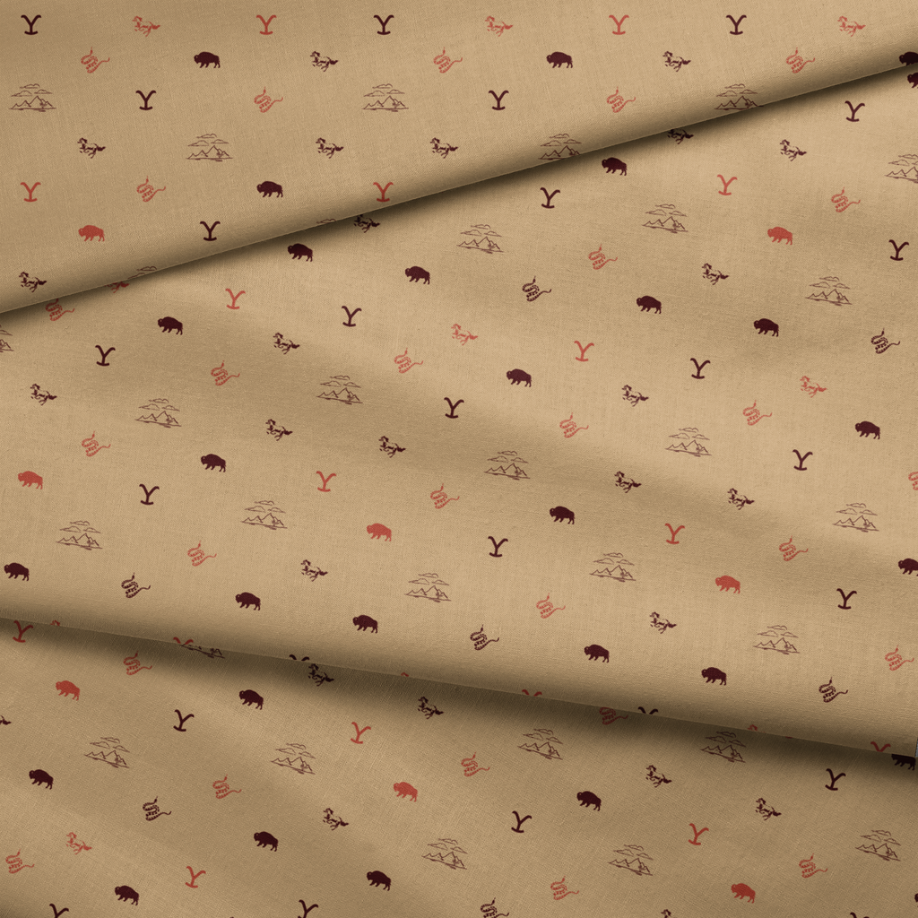 Yellowstone Icons on Tan Fabric